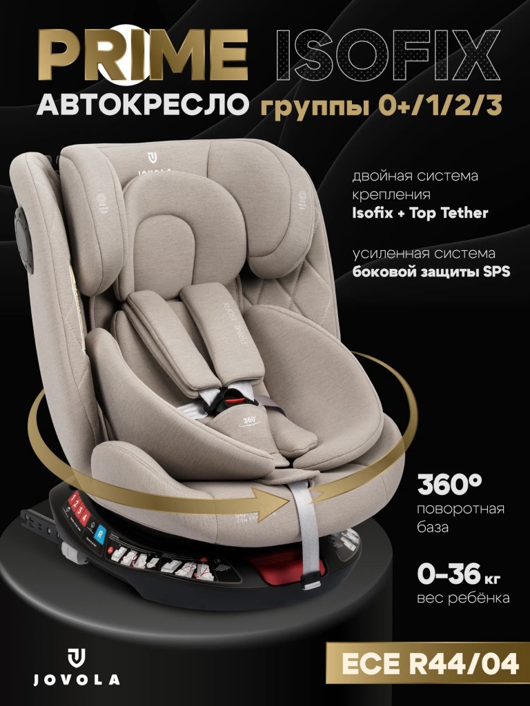 Автокресло JOVOLA в нежном бежевом цвете — универсальное решение для безопасной перевозки ребёнка с первых месяцев жизни до 12 лет (группа 0/1/2/3, до 36 кг). Модель сочетает надёжность, комфорт и удобство использования: подойдёт мальчикам и девочкам (унисекс) и гармонично впишется в интерьер большинства автомобилей.